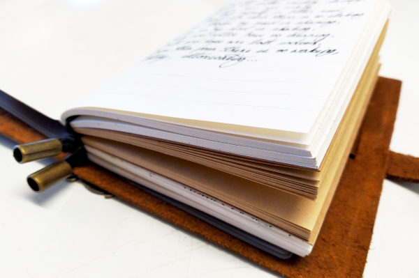 I'm a complete sucker for sketchbooks, journals, notebooks, etc. A few weeks ago I bought a gorgeous example with a leather cover and three different 80 page notebooks inside; one lined, one blank white, and one kraft paper. "Perfect," I thought. "Creating poems and drawings all wrapped up in one beautifully tactile package."