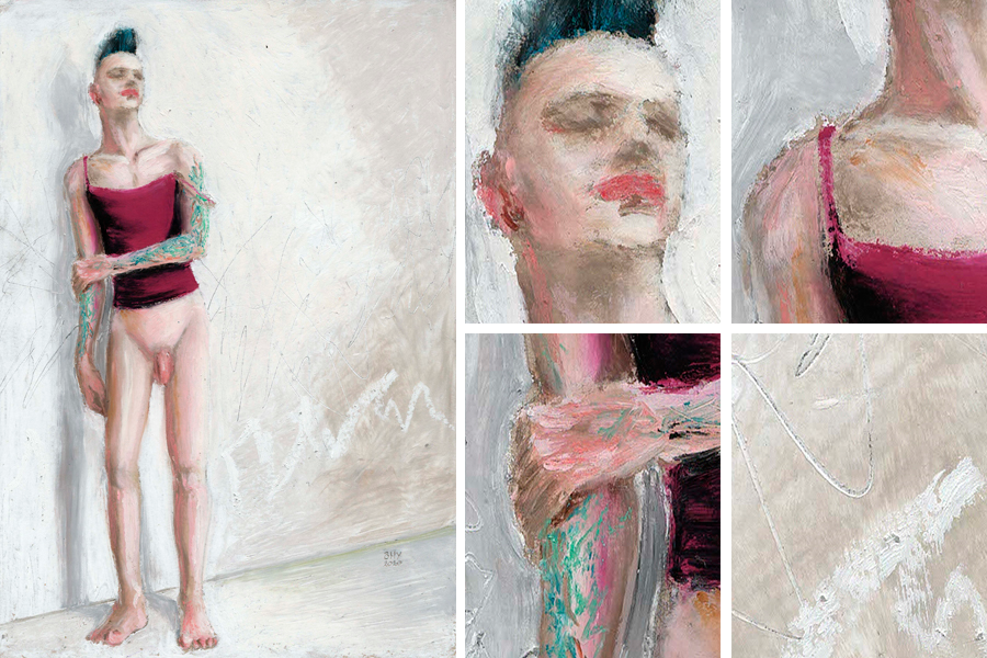 One of the things that really made the difference to the 2020 work was my realisation that I chose to work with oil pastels because I like them - yet I spent a lot of energy bending them to my will and coming up with results that did not express the vitality and immediacy of oil pastels themselves. I wasn't allowing the oil pastels to be part of the painting. Up to 2019, I was diligently blending out all imperfections with my clay shapers, making sure all holes were covered, ensuring edges were neat and all blending was perfectly smooth. The fact of it is that I could have been working with any media. One of the reasons that I love "Pretty in Punk" so much is that I let the oil pastels express themselves and, because of that, the process flowed very enjoyably with minimal fussing about, and it resulted in beautiful broken colours, lost and found edges, and a cacophony of luscious textures when scrutintised up close, as the zoomed in images above show.