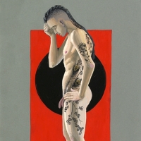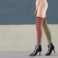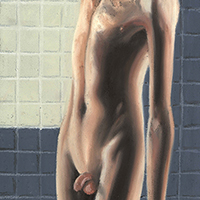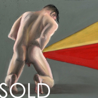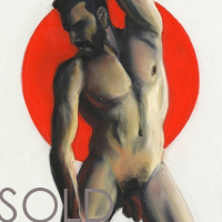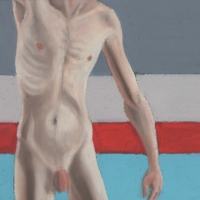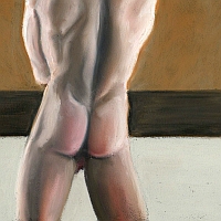 Interpretations of the masculine in oil paint on linen board, oil pastel on card, and gouache on paper.