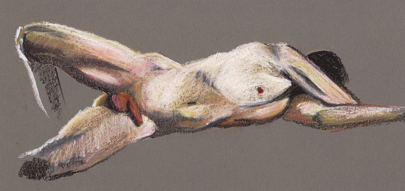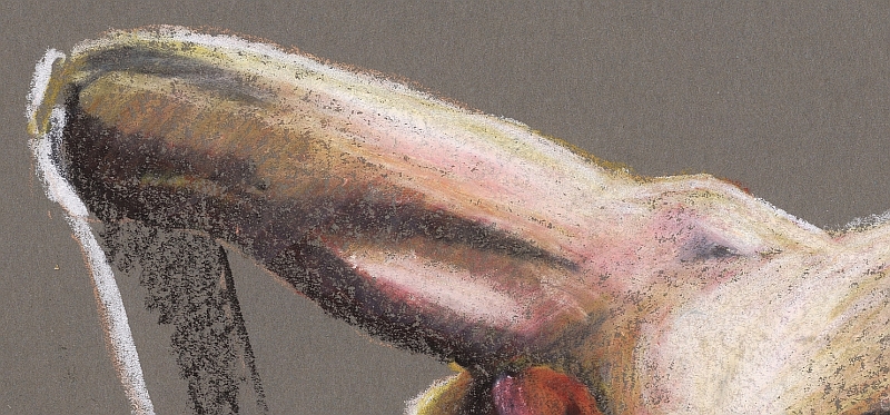 I was particularly pleased with this guy's thigh, which does show a good example of the variety of tones and hues this palette will make. I really enjoyed using the crayons. I found I could work very quickly with them and they were very forgiving - I used Clairefontaine Paint-On Gris and it takes a lot of hard crayoning before that paper won't take any more layers, so adjustments were simple and successful.