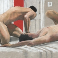 Standalone paintings created in oil pastel or oil pastel with mixed media, using the Zorn palette. The Zorn palette, created by Anders Zorn for portrait painting, consists of only black, red, earth yellow, and white. Read more about the using the Zorn palette in oil pastels in this article